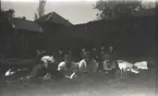 "Husmodersskolan". Unga kvinnor ligger på mage i gräset och läser.