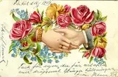 Notering på kortet: God morgon käraste. Till dig min tanke flyger. Utöfver sjö och land. Till dig den sakta smyger Och trycker ömt din hand!