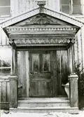 Förstukvist på gården Skindra i Alfta kyrkby. Under nockspiran kan initialerna PJS urskiljas.
