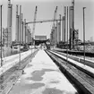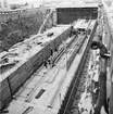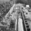 Oskarshamns varv. Nya stapelbädden. Svetshallen sedd från insidan av varvet.