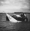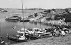 Mariehamn. Familj i motorjakt med flagga från Nyländska jaktklubben.