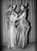 "Wienermodeschau" på Nordiska Kompaniet. Två modeller i klänningar av stärkt organdi med oregelbundet rutmönster och bredbrättade hattar.