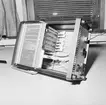 F6 Karlsborg 1943. Flottiljens Link-Trainer (nuvarande flygsimulator). Påverkades vid roderrörelser som ett riktigt flygplan. Albumet är en del av en donation från Karl-Axel Hansson, Karlsborg. Förteckning över hela donationen finns i albumet samt som Word-dokument.