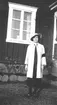En kvinna i sorgdräkt, trol. fotograferad vid Ringsbergsskolan, Växjö.