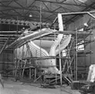 Oskarshamns varv. Uppsättning av spanten på en sida av fruktbåtarna. Örjan Armfeldt, Stockholm.