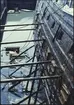 Kvarnfallet 22-23 i Mölndals Kvarnby. Interiör från gammal magasinsbyggnad. Takkonstruktion i trä, takstolar, stöttor etc. Byggnadsdetalj.