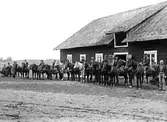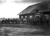 Kuskar samlade utanför prästgården. 1. Gustav Pettersson, statare under Prästgården. 2. Karl-Petter, prostens kusk ? 3. , Kroppfjäll. 4. 5. Linus , Sjöbråten. 6. Ivar Karlsson, Habelsbolet ? 1 och 6 var ofta med och hämtade plantor och blommor ute i bygderna. Om kvällarna körde de jord till Lundbergs planteringar. Reprofotograf: Gunnar Berggren.