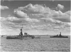 Pansarskeppet Gustaf V i juli 1944. I bakgrunden Drottning Victoria i Kustflottan.