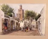 "Rue des Orfévres. Tlemcen mars 86." Gata i Algeriet. Akvarell av Fritz von Dardel, 1886