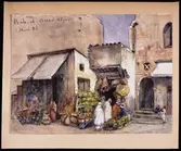 "Rue Bab-el oued Alger 1 mars 86". Affärshus i Alger. Akvarell av Fritz von Dardel