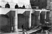 Bild från bygget av Malfors kraftstation. Arbete med fördämningen intill Ljungs tegelbruk. Foto från öster.