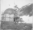 "Undersökning af tätheten". Linnedukar indränkta i blyacetat missfärgas vid läckage. Machuron stående i mitten.