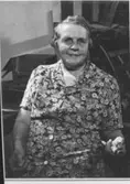 Frimärke ur Gösta Bodmans filatelistiska motivsamling, påbörjad 1950. Frimärke från Estland, 1922. Motiv av hand-väverska. Ur låda "Teknik och filateli XI / Spinning / Vävnad"