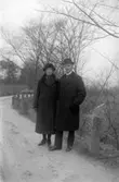 David Karlsson och vän på motorcykel vid Grythyttans station, 1940-tal