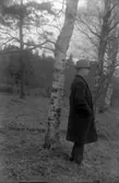 Ateljéporträtt av Evert Forslund i hatt och överrock.