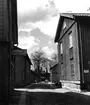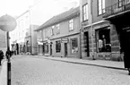 Skaragatan i Kvänum. ............ Pappershandel, Skara Färgeri, Carl Liefgren, köper ull o stickylle, säljer garn, tyger, filtar, emottager ... Albert Berg, Skrädderiaffär Agnes Petterssons Mode o Manufakturaffär.