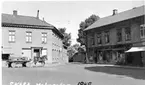 Storgatan i Kvänum i början av 1920-talet. Josef Ekmans Bosättningsaffär, Storgatan 1 och Emil Brax Sko och Läderaffär, Storgatan 3.