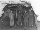 "Skyddsrum i berget i kv Bokbindaren, Pilhagen. Från vänster, nr 2: Karl Johansson ""Träslövs Kalle"", nr 3: Johansson ""Murren""."