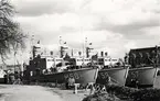Småland. Kalmar län, Stranda härad, Döderhults socken, Påskallavik. Lotsarna Holmströms och Dillströms båtar. den hitre båten byggd för Holmström i Saltvik 1933. L 20 fot, 4 hkr Solo nestor. den bortre byggd av båtbyggare Westin i Mönsterås för fiskare på Arkö i Sthlms skärgård. köpt av Dillström 1935. L 24 fot, 10 hkr. Pentamotor.