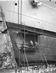 Ymer får ny bottenfärg i Gustavsviks torrdocka, Härnösand.