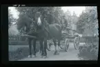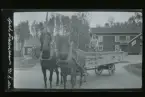 En man på en vagn dragen av två hästar. "Edvin Karlsson, Fogelstad. "