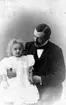 Ateljébild av järnhandlare Arvid Ekström och dottern Harriet. Flickan har en smårutig klänning och enorm rosett i håret.