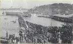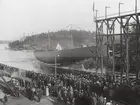 Sjösättning. Fartyget lossas från bädden. Foto från Finnboda varv.