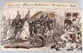 "Under Marsoroligheterna i Stockholm 1848". Ridande polis och folkmassa. Akvarell av Fritz von Dardel.