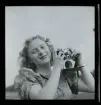 Skyltfönster med reklam för K W Gullers 25 år fotoutställning på Tekniska museet.
