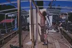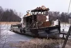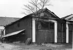 Bilden visar brandskador på taket av två virkeskjul som låg bredvid bildhuggareverkstaden.