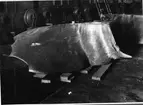Från svåra langningen. Framlangning av projektil i 28 cm projektildurk.