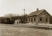 Lidköping-Håkantorps Järnväg HLJ lok 7 "Lidan" vid Hällekis Järnvägsstation.