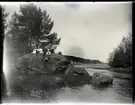 "Husmodersskolan". Kvinnor sitter på sten i vattendrag.