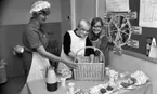 Några kvinnor i husmorsdräkter har samlats för kaffepaus vid serveringen i Strandbjörket.