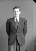 Götlin, 30 september 1965 En fotograf sitter vid ett bord och sorterar fotografier. Han är klädd i ljus kavaj samt vit skjorta med fluga till. Han bär glasögon. Bakom honom sitter en vägghylla fyllda av foton i olika fack. På golvet till höger står ett inramat fotografi.