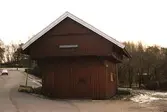 "Vågboden" på Våggatan 6 i Åby, Mölndal år 2000. Över dörren hänger en handmålad skylt med texten: "KOKS KARLSON"