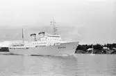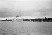 Foto i svartvitt visande visande passagerarfartygen BORE III och KUNGSHOLM på Stockholms Ström 1953. Foto: Ossi Janson