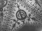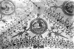 Borgstena sn. Borgstena kyrka efter renoveringen 1900. Interiör, skrivelsen över byggnadens historia. Takmålning: Världens skapelse 4:e dagen.