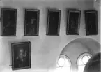 Borgstena sn. Borgstena kyrka efter renoveringen 1900. Interiör, skrivelsen över byggnadens historia. Takmålning.