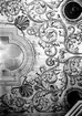 Borgstena sn. Borgstena kyrka efter renoveringen 1900. Interiör, skrivelsen över byggnadens historia. Takmålning: Världens skapelse 2:a dagen.