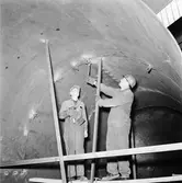 Lärlingar på Nordiska Kompaniets Verkstäder i Nyköping. Harry Andersson, till vänster och Harald Andersson, till höger.Omkring 1957.