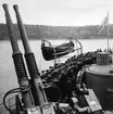 Sjöbefäl poserar framför en av livbåtarna på Najadens däck.