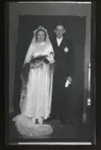 "Aina och Rune Karlsson, Nackhäll." Porträtt av ett brudpar.