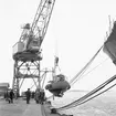 SVERIGE bogseras in till kajen T.v. Landskrona hamn.