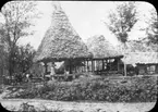 70 talets måltid, sommar fam. 16 juni 1965 Sällskap intar måltid vid dukat långbord.