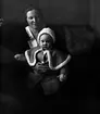 Mor i bredbrättad hatt och två barn. (Se även bild MR2_1219)