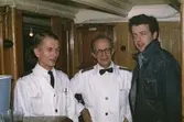 Komikerparet Helan och Halvan ombord på Skärgårdsbåten "Bore" vid Nybrokajen. I bakgrunden syns Strandvägen 1-5 b.