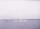 Den här bilden är tagen från Fylgia akerut där en Jagare och andra örlogsfartyg passerar förbi.