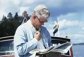 1:a majreveljen 1983 flaggtrumslagaren Alf Sigurdsson, stoltsera här utanför ingången till gamla Blekinge Museum f.d Amiral Carl Reinhold Nordenskiölds gård.