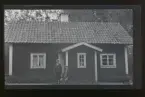 "Pettersberg, August och Albert Läch, födda början 50-talet" En familj framför sitt hus.
